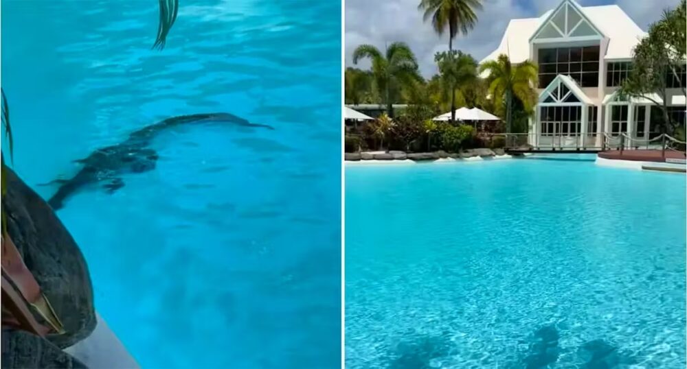 Une vidéo publiée sur le réseau social TikTok montre le jeune reptile allongé au fond de la piscine du Sheraton Grand Mirage Resort, à Port Douglas.