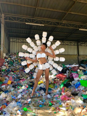 Gobelets en plastique, barquettes, flacons de shampooing, déchets verts… Tout est bon pour créer des tenues déjantées. Suchanatda Kaewsa-ngas styliste transgenre originaire de Thaïlande en fait la démonstration. Les photos et vidéos de ses créations souvent prises dans les paysages de son pays sont largement partagées sur la toile.