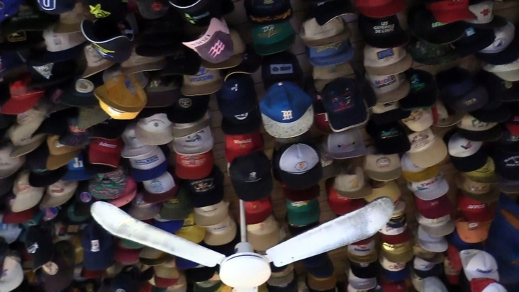 Dans sa salle d’accueil, au-dessus de son bar-café, l’hôtel a décoré son plafond avec 5 680 casquettes très précisément. Des casquettes de nationalités du monde entier, offertes par les clients de passage. Et parmi toutes ces couvre-chefs, Il y en a quelques-uns du fenua.