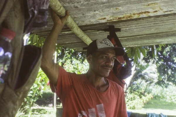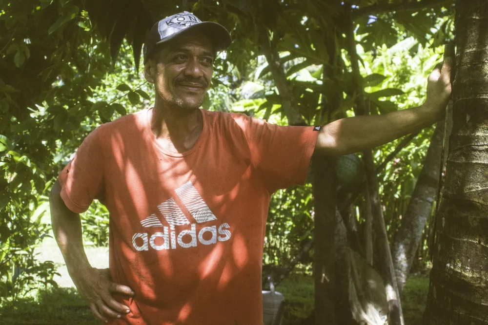 « Je ne travaille pas pour de l’argent mais avec du troc. Si des personnes veulent prendre ou m’échanger quelques fruits, ils peuvent mais je n’irais pas les vendre. Si j’ai besoin de payer des factures, je fournis du coprah à des entreprises qui fabriquent du miti hue. Si je fais ça une ou deux fois par an, ça me suffit pour avoir l’électricité chez moi. Si je veux manger de la viande, je vais chasser et si je veux manger du poisson, il y a tout ce qu’il nous faut dans la rivière ou le lagon. Je n’ai pas besoin de travailler pour quelqu’un d’autre que moi-même. Pour moi, être mā’ohi, c’est vivre comme ça. Retourner à la terre, c’est retourner à sa culture. »