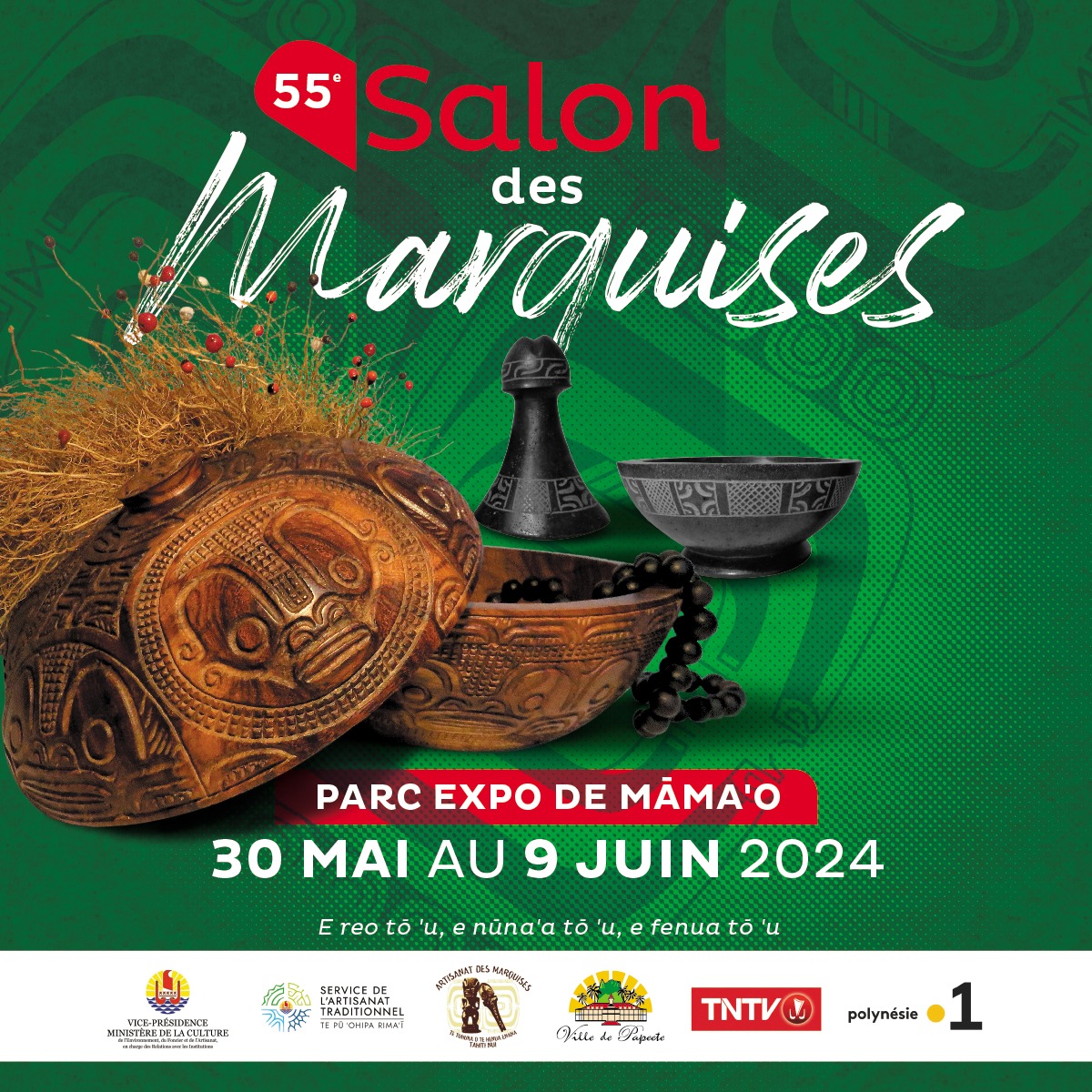 Des animations seront également proposées : prestations musicales, des représentations de danse, la création de kumu hei « bouquet d’amour », le montage de colliers de graines, la sculpture sur bois, ainsi qu’un concours étalé sur plusieurs jours pour la fabrication d’un récipient ko’oka en bois de miro ou de tou.
