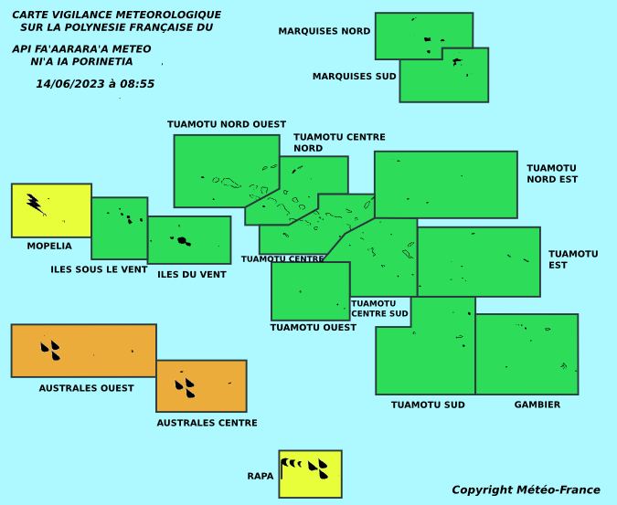 Météo France a placé ce mercredi l’archipel des Australes ouest et centre en vigilance orange pour des fortes pluies.