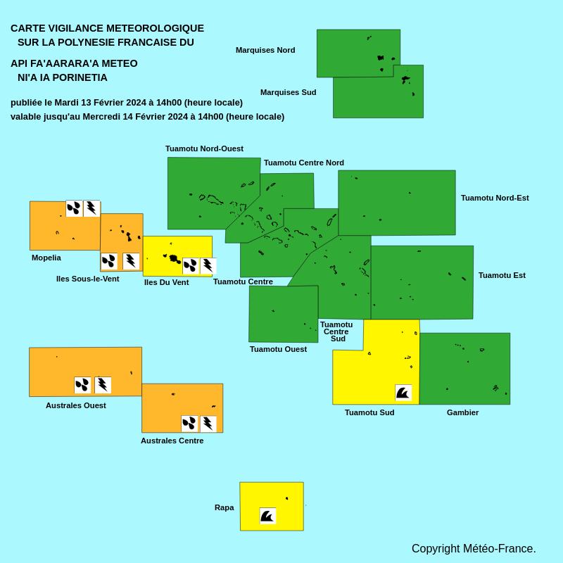 Maintien de suivi pour les fortes pluies sur les Îles Sous-le-Vent et Mopelia.