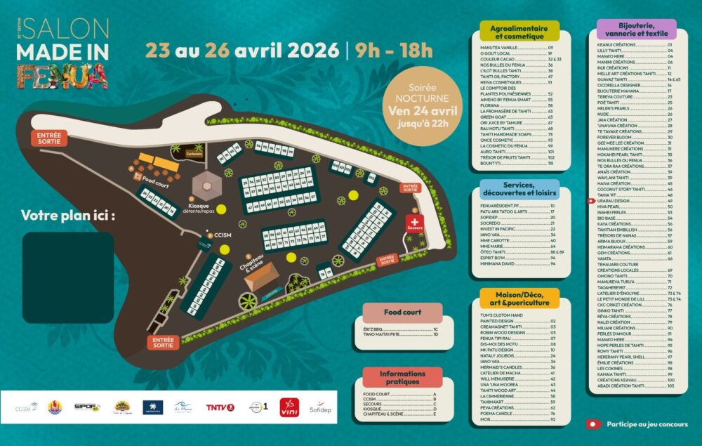 Une centaine d’exposants seront présents place To’ata du 23 au 26 avril pour une nouvelle édition du salon Made in Fenua. Chaque année, l’événement met en lumière les artisans et produits du fenua : bijoux, textile, cosmétique, déco, agroalimentaire…