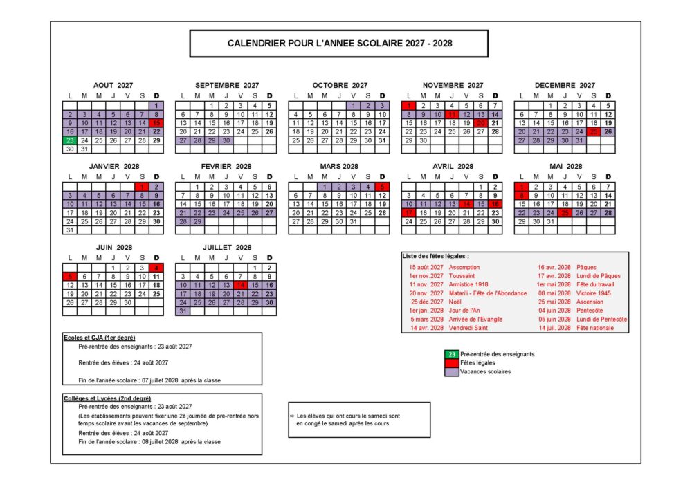 Calendrier scolaire 2027 – 2028