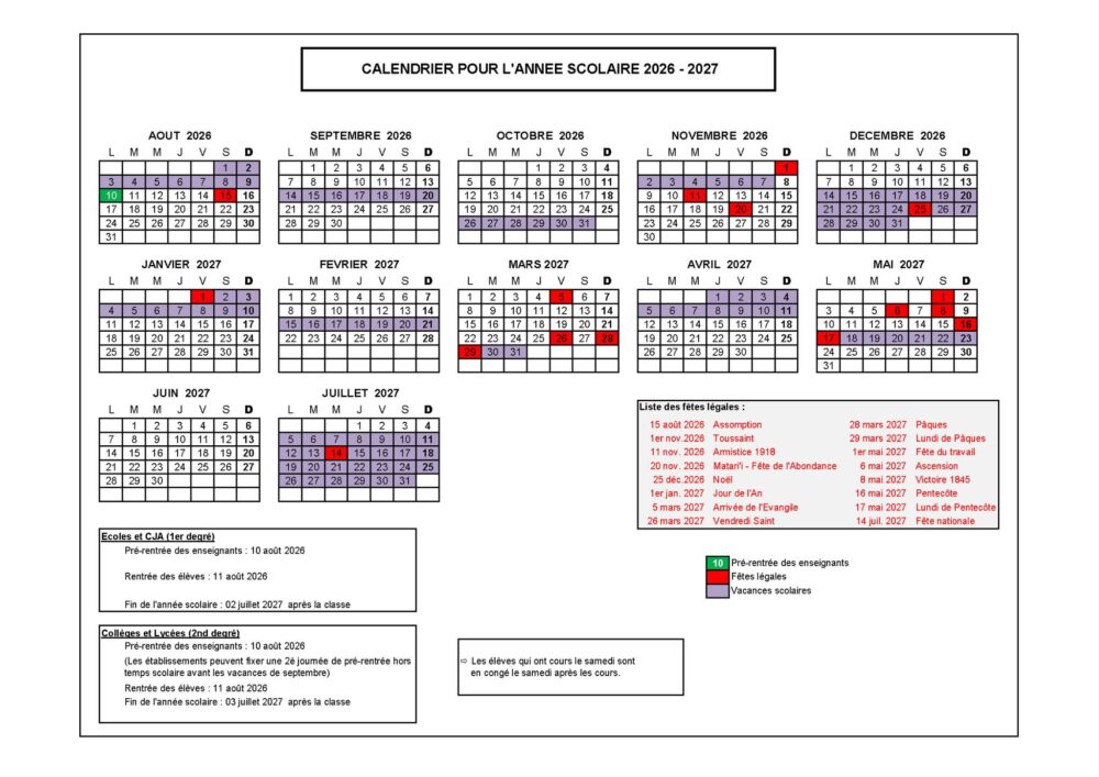 Retrouvez dans notre article les calendriers scolaires pour les années 2026-2027, 2027-2028 et 2028-2029 des écoles publiques et privées de Polynésie française.