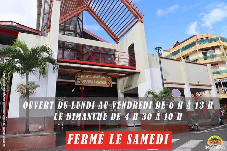 Infos Pratiques Marché de Papeete : nouveaux horaires à partir du 30 août Publié le 27/08/2021 à 12:22 Mise à jour le 27/08/2021 à 12:22 Rédaction web Partager FacebookTwitterLinkedinEmail Dernières news 279 morsures de chiens recensées au CHPF depuis 2022 Il y a 19 minutes Service national : davantage de candidatures pour l’armée de Terre que de places ouvertes Il y a 2 heures Céline Hoiore, ancienne secrétaire générale de l’Eglise protestante maohi, est décédée Il y a 3 heures A lire aussi Infos Pratiques Travaux entre Tipaerui et Auae : accès modifiés sur le front de mer Il y a 2 jours Faits divers (MAJ) Agression à coups de couteau : «Pas de notion de tentative de meurtre », selon la procureure Il y a 3 jours Société À Paofai, un appel à projets à 12 milliards de Fcfp pour relancer le centre de Papeete Il y a 6 jours dans la même rubrique Le RIMaP-P ouvre ses portes au public le 9 mai à Arue Il y a 1 heure Travaux à Hitia’a : circulation alternée entre les PK 41,1 et 42,2 Il y a 2 jours Travaux entre Tipaerui et Auae : accès modifiés sur le front de mer Il y a 2 jours