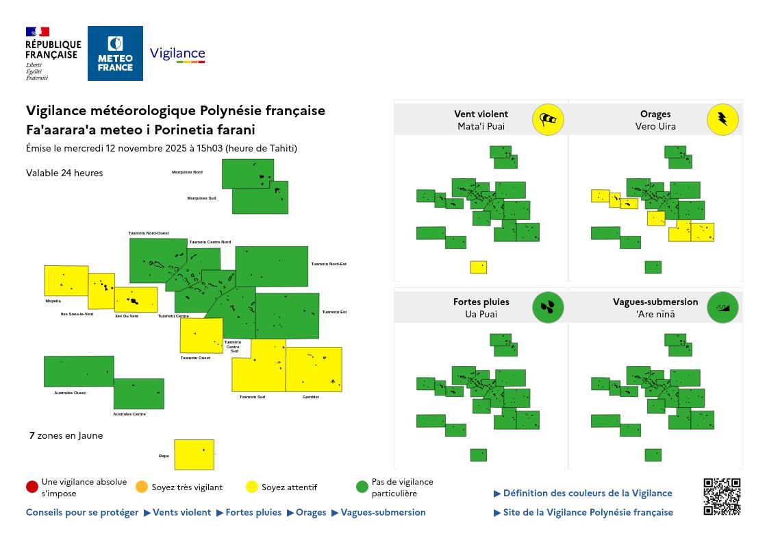 Aux Raromatai, jusqu’en fin de nuit de jeudi à vendredi, des averses et grains parfois orageux vont se succéder, annonce Météo France. Jeudi après-midi, toutefois, une période d’accalmie avec quelques éclaircies est prévue jusqu’en début de nuit de jeudi à vendredi.