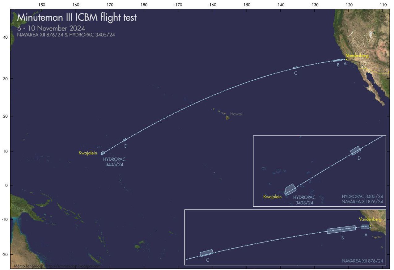 Le missile a parcouru environ 6700 kilomètres pour terminer sa course 30 minutes plus tard vers l’atoll de Kwajalein, aux îles Marshall.