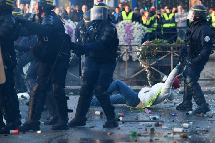 Cette manifestation, comme de nombreuses autres organisées en France pour protester contre la hausse des taxes sur le carburant, n’était pas déclarée.
