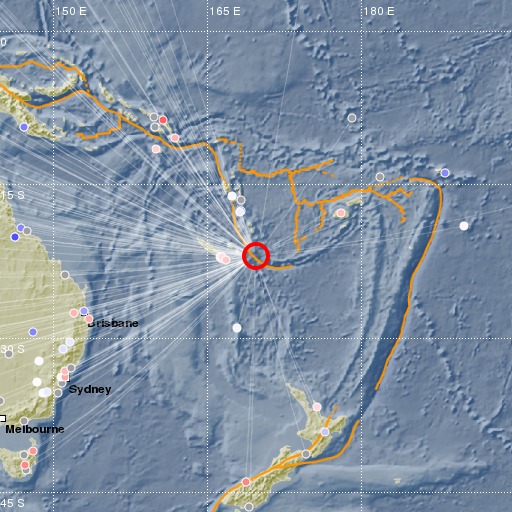 A 21 heures UTC -10 un nouveau séisme de magnitude 7 a eu lieu au large de la Nouvelle-Calédonie selon l’institut USGS