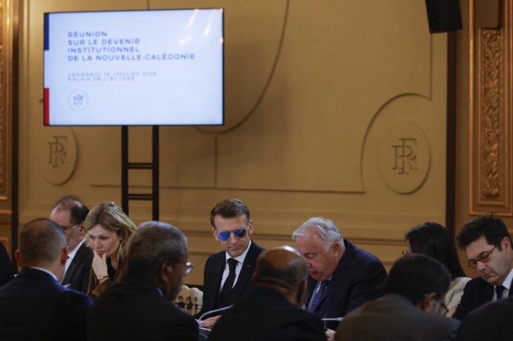 « L’État souhaite continuer d’avancer sur la stabilisation des institutions de la Nouvelle-Calédonie dans un dialogue respectueux de chacun, sans passage en force mais sans paralysie non plus », a déclaré le chef de l’État en ouverture de cette réunion avec l’ensemble des forces politiques de l’archipel à l’exception du Front de libération nationale kanak et socialiste (FLNKS), qui a refusé de se rendre à Paris.