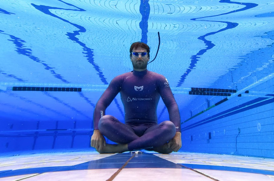 La scène se déroule le samedi 14 juin 2025. Voilà presque une demi-heure que le plongeur croate est immergé à l’horizontale dans une piscine. Les douleurs le traversent, les spasmes le secouent sous les regards inquiets de son médecin, de ses amis et du jury invité à homologuer l’insensé chrono.