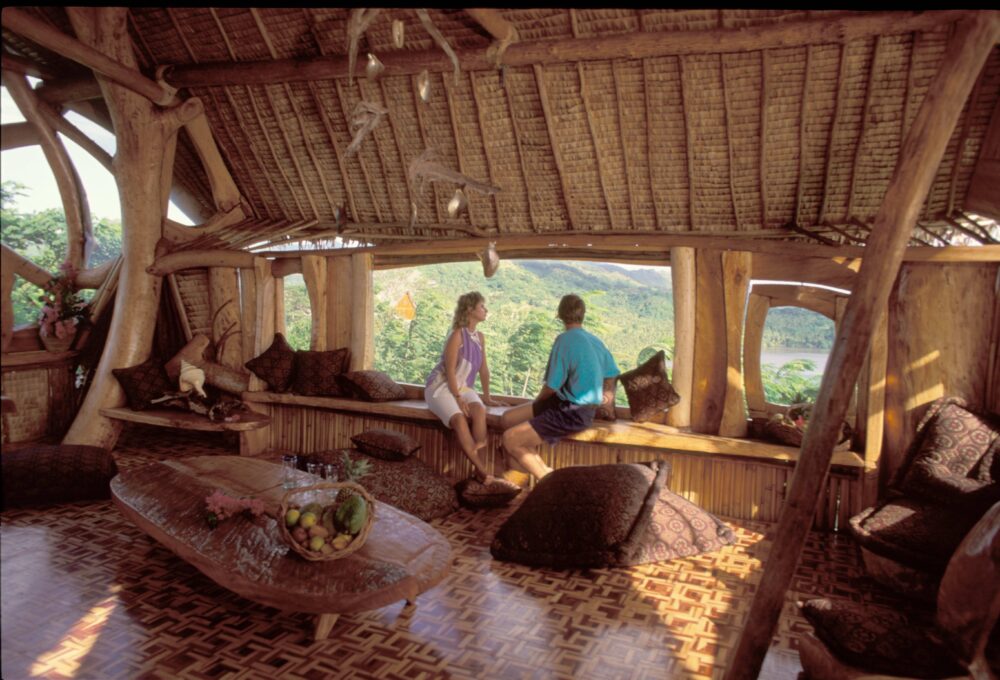 Les bungalows spéciaux de l’hôtel, les plus originaux, tout en bois et en matériaux naturels, le sculpteur consacra six ans de sa vie à les construire. A l’époque, il s’agit de propositions architecturales totalement hors-normes et audacieuses, bien loin des standards attendus du luxe classique. Dans les années 90, l’établissement est mythique. La Jet-Set américaine vient y vivre le frisson de l’authenticité. Jusqu’en 1998. L’hôtel est balayé par un cyclone.