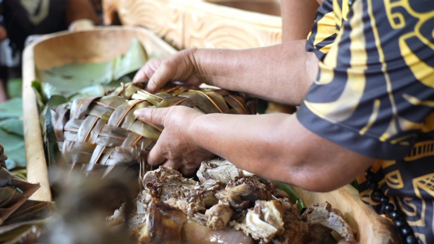 « Le Kaiiamau est un repas communautaire célébré surtout dans des événements tels que le Matavaa ou dans les rencontres entre tribus de chefs, raconte Toti Teikiehuupoko, académicien de la langue marquisienne. On prépare ce Kaiiamau, un repas traditionnel. L’arti culinaire marquisien est présenté lors de ces manifestations »