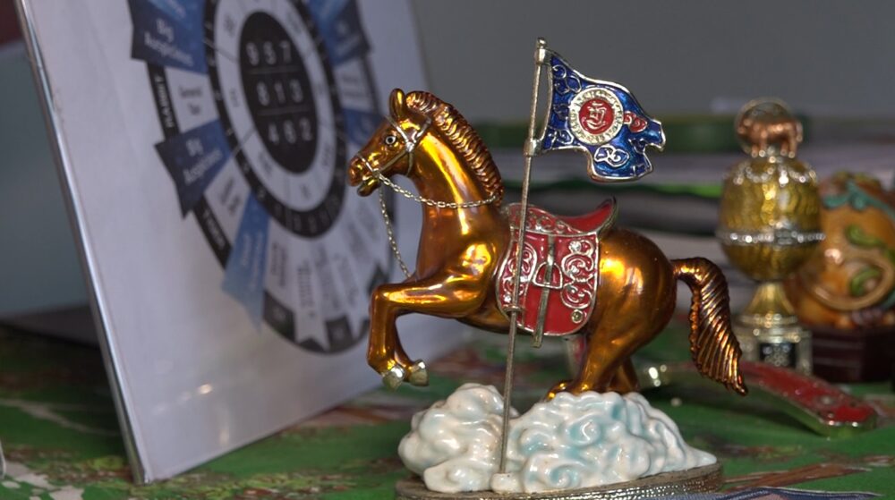 « Ça veut dire que là, on nous souhaite de réussir sur le champ, tout ce qu’on entreprend. Et en fait, c’est un jeu de mots qui veut dire que sur le dos de cheval, qui veut dire sur le champ, on réussit. Et le rouge, ça veut dire sur le champ, on va faire fortune » indique Lucie Guilloux, membre de l’association Wen Fa.