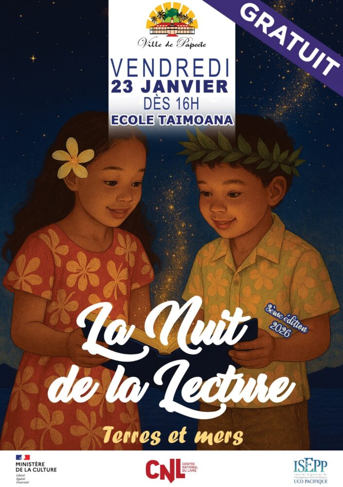 Après deux premières éditions plébiscitées par le public, la commune de Papeete renouvelle la Nuit de la lecture, cette année autour du thème « Terres et mers ». Jusqu’aux alentours de 20 heures, petits et grands sont invités à partager des moments de lecture, de jeu et de création, dans une ambiance conviviale et festive.