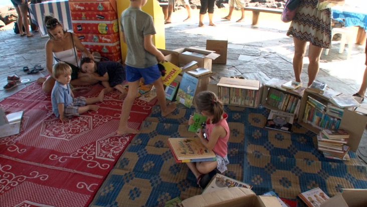 Divers ateliers, en dehors de celui consacré à la lecture, sont proposés aux enfants. Origami, peinture sur le thème de l’eau, dessins, collage etc… Des cadeaux sont aussi offerts aux enfants, ainsi que quelques ouvrages.
