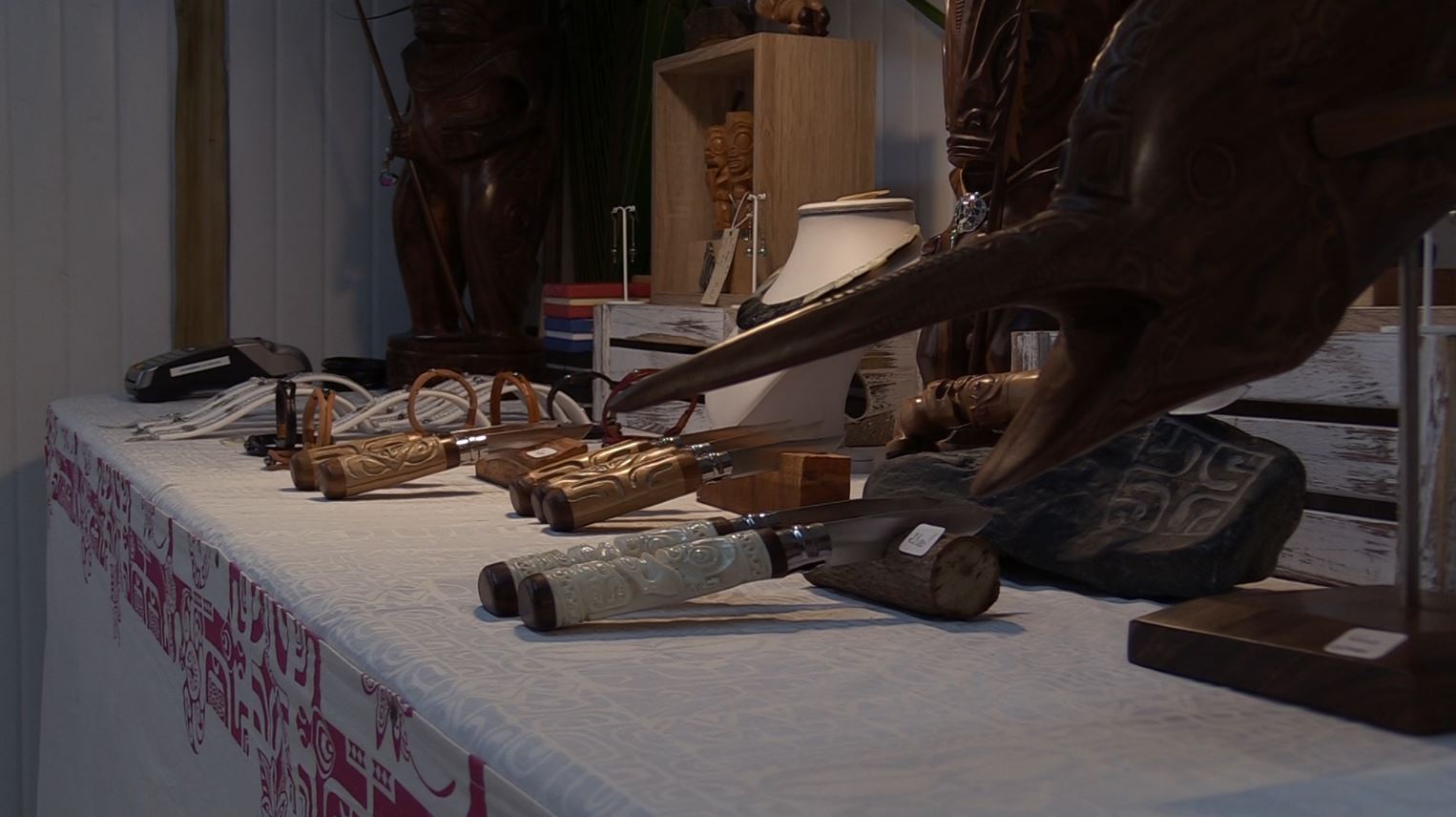 Faaura Bouteau, artisane et membre de la CCISM, se montre elle plus optimiste. Cette 4ème édition du village regroupe une vingtaine de patentés locaux de la CCISM, un peu plus que l’an dernier déjà. Ils exposent leurs bijoux, leur textile et leur vannerie. Et ils ont encore, selon elle, le temps de vendre puisque le village se referme samedi soir. « Cette année, cela a explosé. Les gens viennent, achètent… ils sont contents de nous voir. Il y a un réel engouement. (…) Les touristes, les locaux… plein de gens viennent à ce village » nous dit-elle.