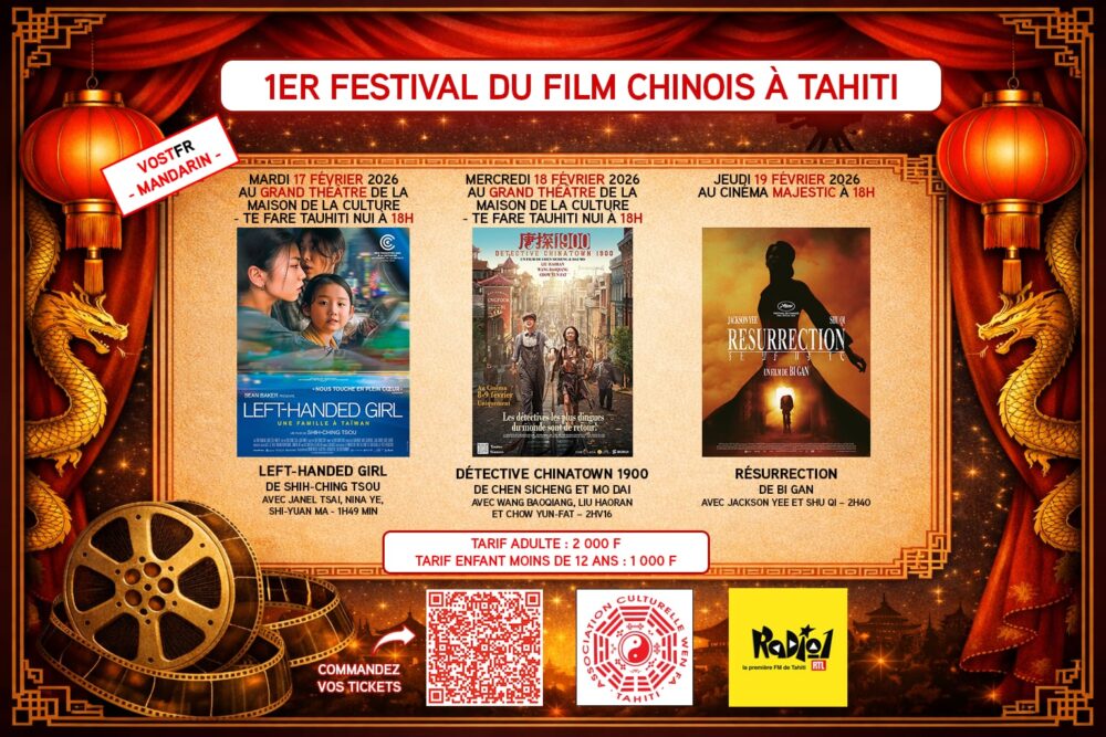 Le cinéma chinois s’invite à Papeete. Pour célébrer son cinquantième anniversaire, l’association culturelle Wen Fa lance la première édition du Festival du film chinois, organisée du 17 au 19 février en partenariat avec Te Fare Tauhiti Nui – Maison de la Culture. Trois œuvres du cinéma contemporain seront projetées au Grand Théâtre et au cinéma Majestic, offrant au public une immersion dans la diversité des productions asiatiques récentes.
