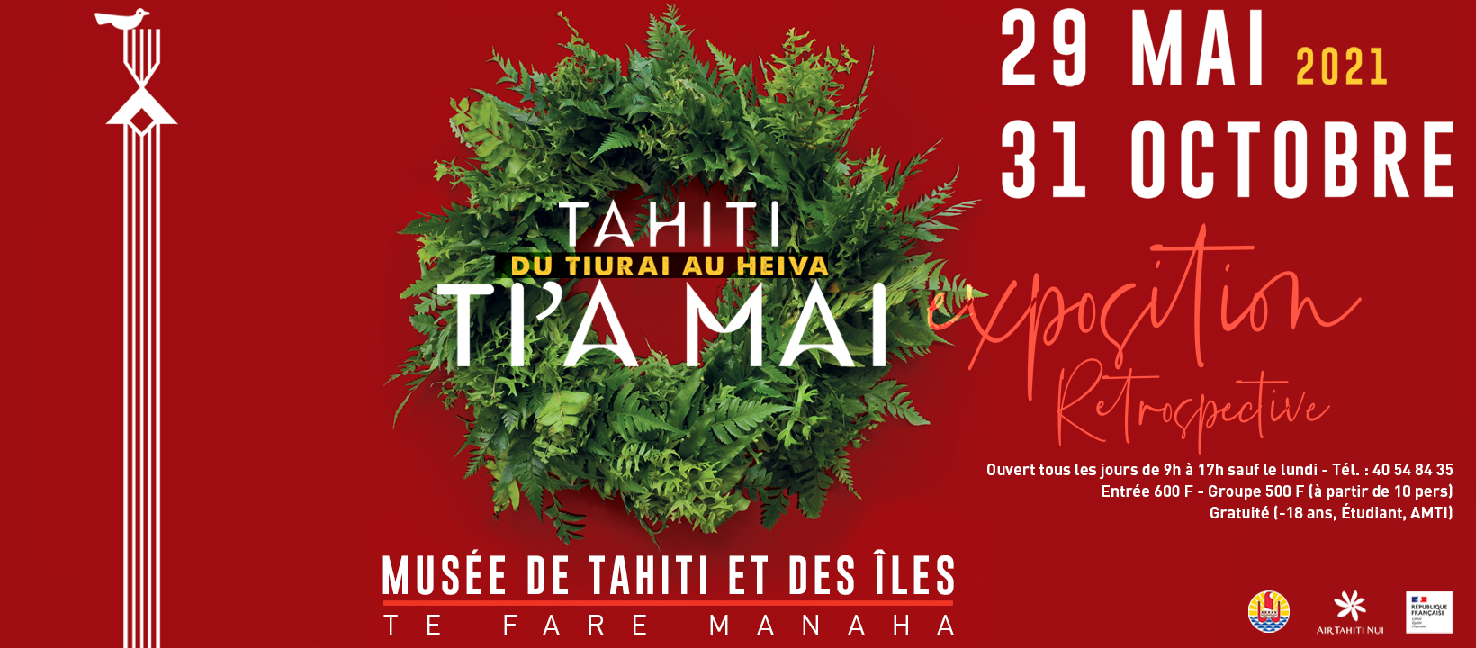 – Exposition Tahiti ti’a mai, du Tiurai au Heiva, du 29 mai au 31 octobre 2021 au Musée de Tahiti et des Îles – Te Fare Manaha