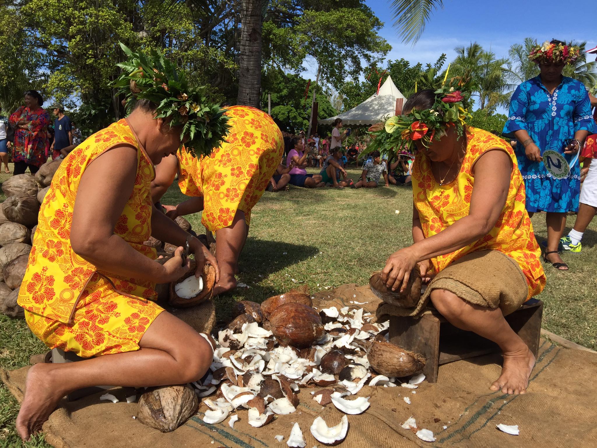 Autre épreuve : le concours de coprah par équipe chez les femmes. On enregistrait 4 équipes engagées, 2 de Moorea et 2 de Tahaa.