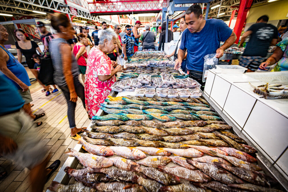 Le cliché est tiré d’un triptyque sur le thème « Jour de marché ». « Le marché de Papeete, particulièrement le dimanche matin de bonne heure, est typique avec son ambiance extraordinaire. Un lieu que je connais intimement, raconte la photographe. Pendant quelques années, mon père, agriculteur, y proposait aussi nos produits le dimanche matin : salades, pota verts, herbes aromatiques, fruits. Pour ce faire, tout était préparé la veille puis le jour J, il fallait se lever dans la nuit pour faire le trajet, installer le stand et accueillir les premiers clients. C’est un souvenir fort… Ce projet photographique m’a permis de retrouver l’ambiance vibrante et humaine du marché. C’était un vrai bonheur de rencontrer les maraîchers, de voir leurs gestes, leurs sourires. »