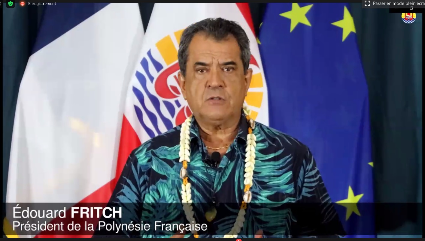 COMMUNIQUÉ - Le président de la Polynésie française, Edouard Fritch, a participé ce matin par vidéo enregistré au colloque "Gouvernance, économie et conservation de l’Océan Pacifique Sud" organisé par le gouvernement du Chili et l’ambassade française à Santiago.