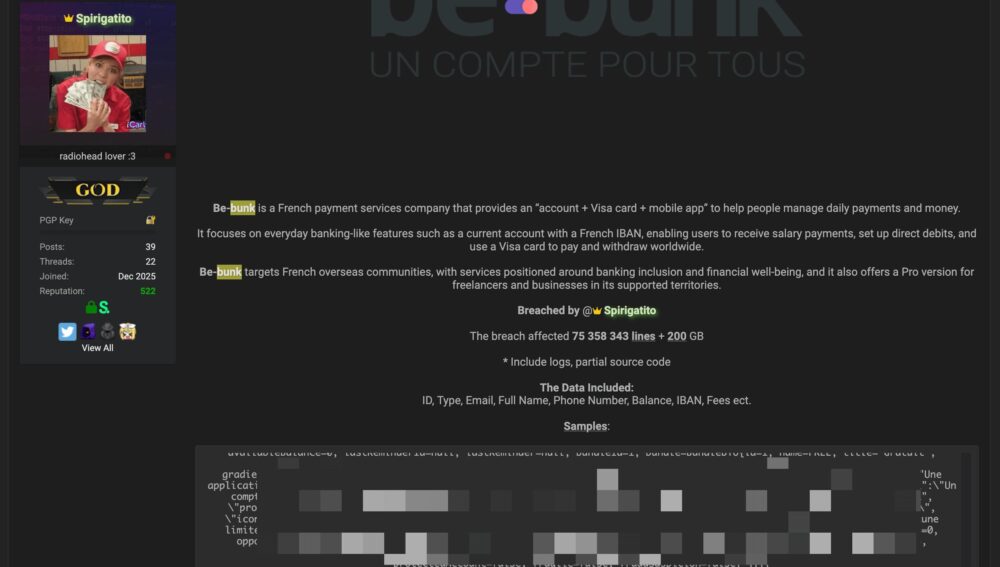 Dans le détails, selon Be-Bunk, ce sont les noms, prénoms, email, numéro de téléphone, solde de compte, de rachats, frais, le statut KYT (Know Your Customer), la date de création des comptes, le produit détenu par le client, le statut de Personne politiquement exposée, le token de notification, et les numéros de compte (IBAN) qui ont été dérobés…