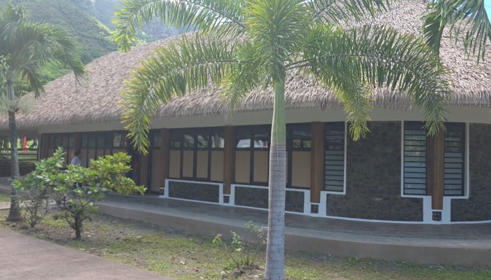 “Il n’y pas grande qui a changé. Il y a la toiture, le Palmex. Le squelette en lui même est d’origine, comme les poteaux en pierre”, explique la présidente de l’association Te Tapavau O Nuku Hiva, Louise Huukena.