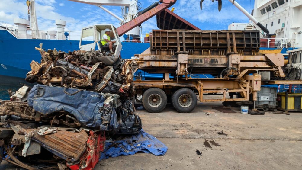 « Pour les communes, c’est très compliqué de faire évacuer leurs déchets et surtout des carcasses de voitures volumineuses et en si grande quantité, explique Ryan Leou hef de projet en gestion des déchets à la Diren. C’est pour ça qu’on a fait appel à la flottille, justement pour pouvoir maximiser l’export de ces déchets. »