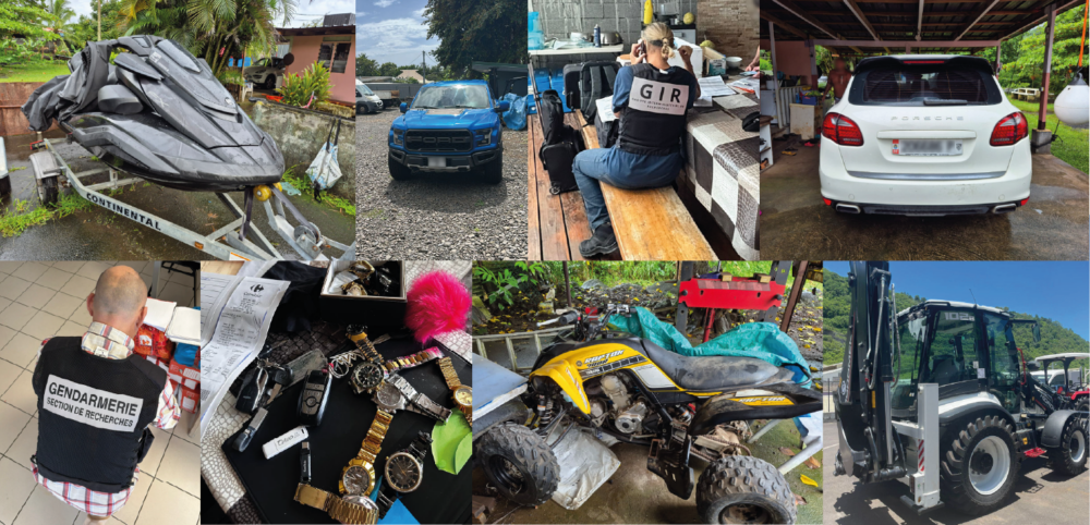 L’enquête, conduite en 2025 par la Section de Recherches (SR) de la gendarmerie nationale, visait plusieurs membres d’une même famille et leur entourages, qui « vivaient largement au-dessus des moyens qu’ils déclaraient », précise le parquet. Elle avait débuté après la détection d’opérations financières suspectes, notamment des tentatives d’acquisition de terrains à Tahiti et l’achat de véhicules neufs, alors que les personnes concernées « ne disposaient d’aucune activité professionnelle connue ».