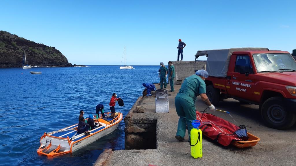 Pour éviter tout risque éventuel de contamination des habitants de Nuku Hiva, le navire a été isolé dans la baie inhabitée de Haahopu, la plus proche de l’aérodrome de Terre Déserte. L’avion militaire Casa a acheminé sur place, en début de matinée, des médecins et des personnels soignants du Samu, équipés de tenues de protections biologiques complètes, qui ont aussitôt pris en charge le marin gravement atteint qui a pu être stabilisé. Ils ont également procédé à des prélèvements sur l’ensemble des 30 membres d’équipage.