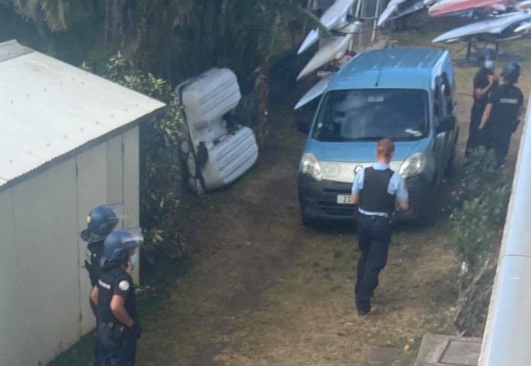 Selon plusieurs voisins, une douzaine de gendarmes équipés de casques et de gilets pare-balles étaient sur place. Selon la gendarmerie, c’était la brigade de Arue, et les moyens employés étaient liés aux réactions précédentes de ce médecin.