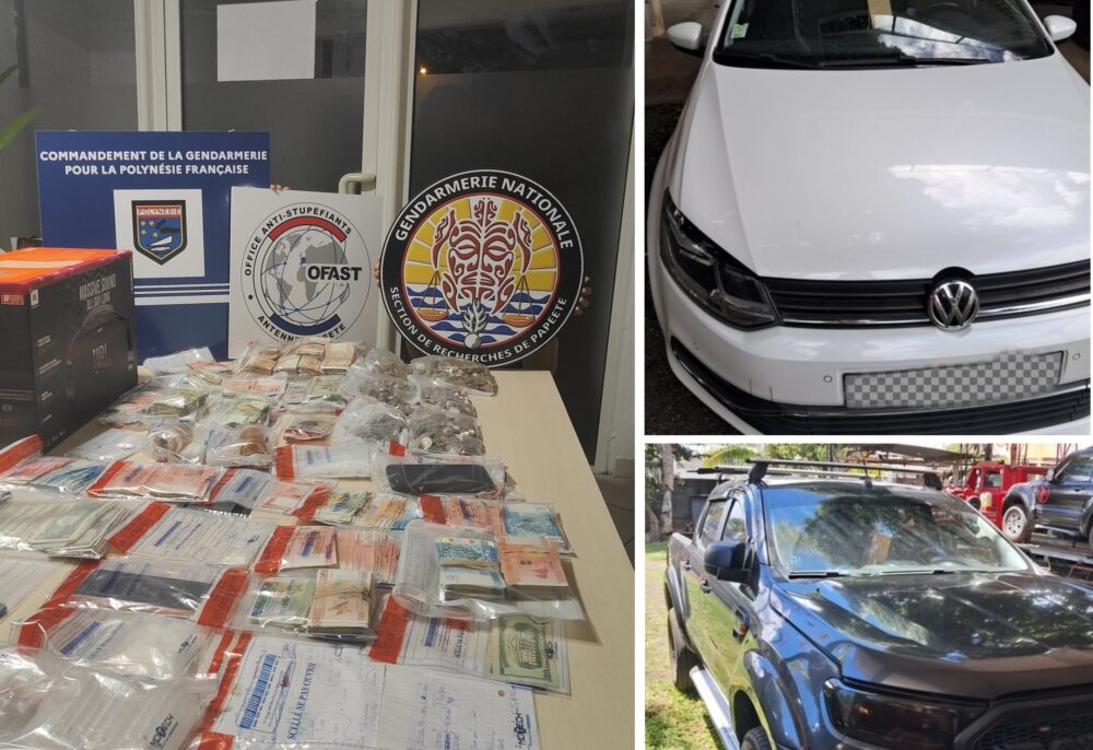 Les perquisitions menées ont permis la saisie de près de 10 900 000 francs CFP, 15 000 dollars américains, plus de 100 grammes d’ice ainsi que deux véhicules.