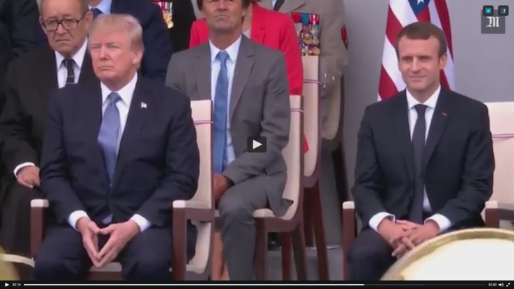 La France a trouvé dans son histoire des « alliés sûrs, des amis qui sont venus à (son) secours » et les « Etats-Unis d’Amérique sont de ceux-ci », a souligné le président français depuis la tribune officielle avant d’échanger une longue accolade avec son homologue américain.