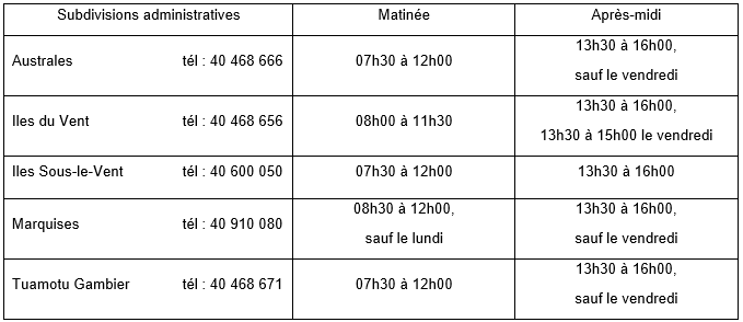 Les horaires d’accueil varient selon les subdivisions et doivent être respectés.