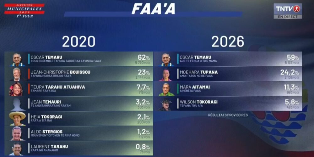 Cette victoire permet au Tavini Huiraatira de conserver Faa’a, qui demeure la seule commune dirigée par un maire indépendantiste à l’issue de ce premier tour des municipales.