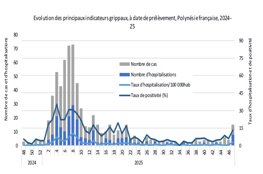 Fatigue, toux, maux de tête, fièvre… c’est le même constat chaque fin d’année, mais cette fois, la « saison grippale » semble démarrer un peu plus tôt au fenua. Alors qu’elle débute en général « quelques semaines après celle de l’hémisphère nord », explique l’Agence de régulation de l’action sanitaire et sociale (Arass), le nombre de cas est déjà en forte hausse.