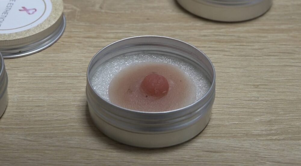 Des prothèses identiques à un mamelon : relief, teinte de l’aréole, stries naturelles de la peau. Dans son cabinet, Emma Duret, esthéticienne, propose aux femmes de retrouver cette part de leur intimité, après l’épreuve une ablation du sein. Pour redonner du naturel aux poitrines, elle propose des tatouages en 3D ou ces prothèses de mamelons faites sur mesure. « On discute toute les deux de la technique la plus adaptée pour elle. Est-ce qu’elle préfère un tatouage en 3D de son aréole, est-ce qu’elle préfère une prothèse, ça, c’est vraiment très personnel. Si elle s’oriente sur une prothèse, je vais faire un moule de son deuxième mamelon puisque, généralement, en cas de mastectomie on enlève un mamelon. »