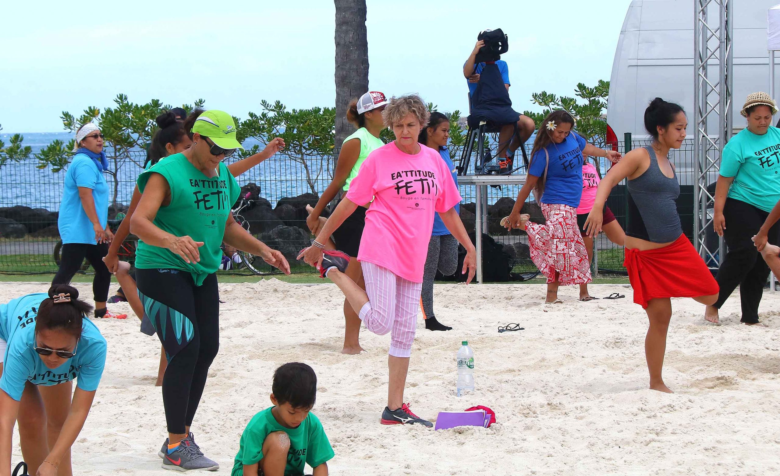 De nombreux cours collectifs et activités individuelles sont organisés à cette occasion pour les adultes : ‘Ori tahiti, beach soccer, body Combat, street basket, RPM, pole dance, marche nordique, yoga, challenge bras de fer…