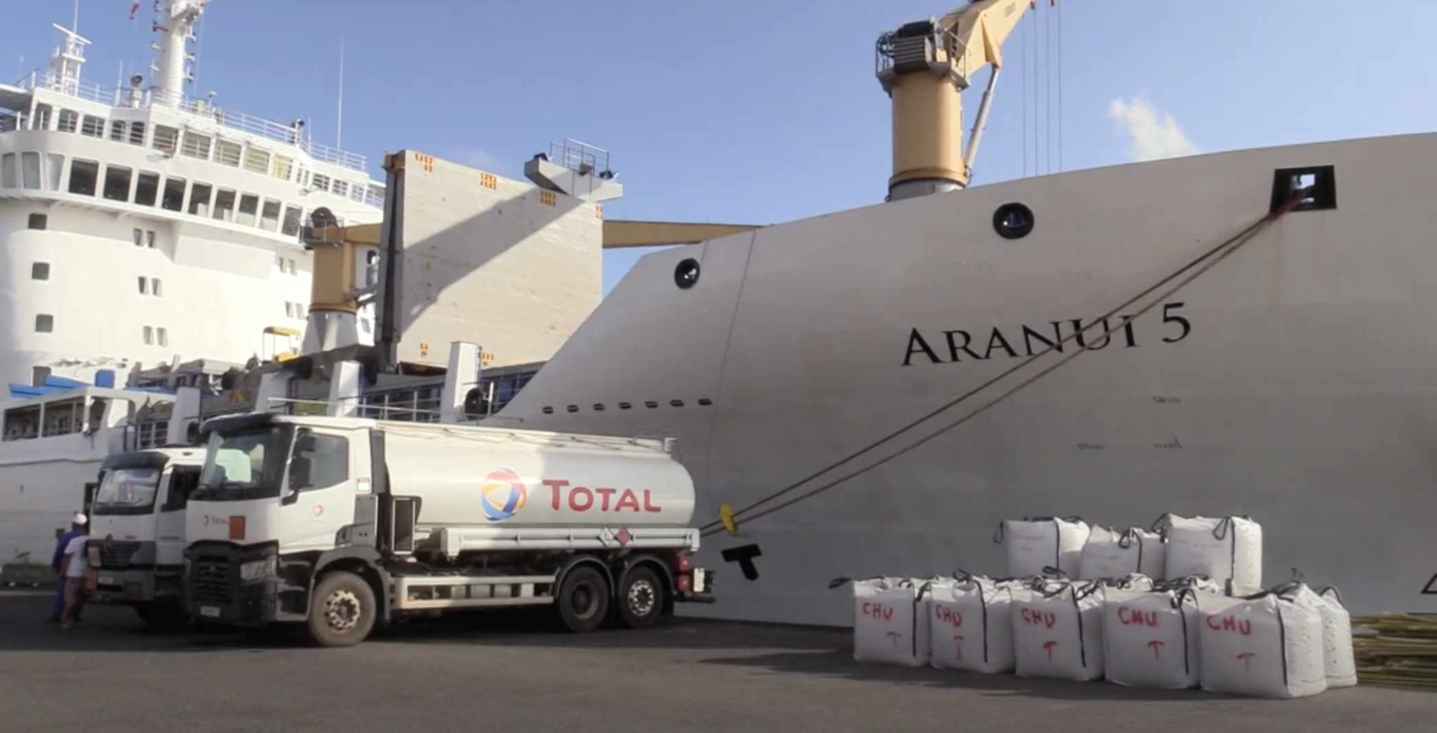 7 heures ce dimanche, l’Aranui accoste sur le quai de Uturoa. À son bord : 120 croisiéristes, mais également une cargaison de 72 000 litres de gasoil pour ravitailler Raiatea et Tahaa, suite à l’arrêt complet des rotations des caboteurs aux Raromatai. « Nous avons profité de mettre 36 000 litres de gasoil à bord de l’Aranui pour Raiatea et 36 000 litres logés dans des containers spéciaux pour Tahaa. À court terme, c’est Tahaa qui sera en perte de gasoil, et je pense que ni la centrale électrique ni la population n’aimeront ça… » déclare Georges Siu, P.-D.G. de Petropol Mobil.