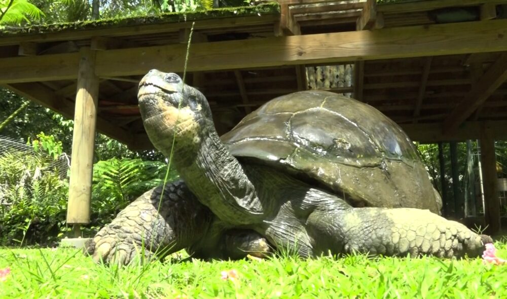 « Les grosses tortues terrestres des Galápagos ont l’espérance de vie la plus importante. On parle de 150 à 160 ans. Elle, elle est très bien nourrie, bien soignée, avec des vétérinaires, je pense que c’est le secret de sa longévité. Normalement, c’est la tortue la plus âgée au monde », veut croire Régine Henry, sa soigneuse.