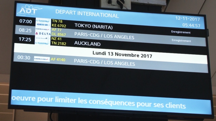 « Le vol de ce matin qui devait embarquer 260 passagers, va de nouveau décoller à vide faute de PNC locaux en nombre suffisant. Plusieurs PNC se sont déplacés mais pas suffisamment pour pouvoir décoller avec des passagers. Il a manqué juste un seul PNC. Sur les 260 passagers qui devaient partir ce matin, la grande majorité sont des touristes américains et européens. Nous allons pouvoir en faire partir 110  sur le vol affrété sur Air Tahiti Nui ce soir, qui emporte déjà 180 passagers restants du vol de vendredi. Nous allons donc héberger une centaine de touriste qui ne pourra pas partir aujourd’hui, et chercher des solutions alternatives dans les prochains jours.