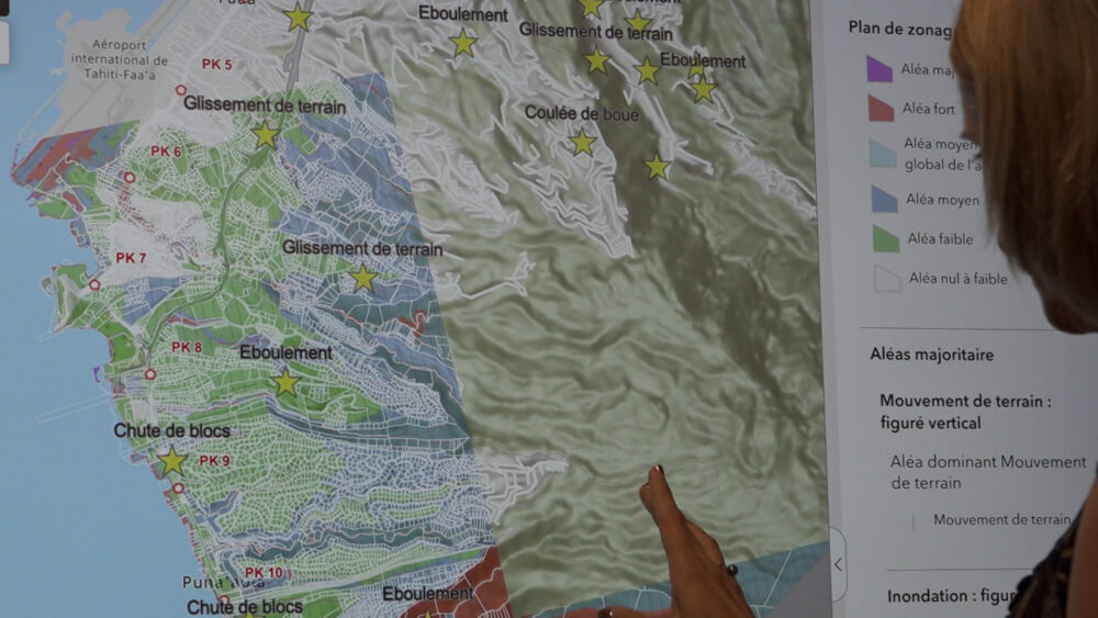 « Cela permet de savoir, quand on est propriétaire terrien ou que l’on a un projet à réaliser, de localiser sa parcelle et voir comment elle est exposée aux différents aléas naturels; L’autre chose, c’est sensibiliser sur les phénomènes naturels à travers un petit historique sur les évènements marquants qui sont là pour rappeler ce qui peut se produire sur nos terrains, sur les différentes îles » , résume Émilie Chapelier, chargée de la prévention des risques à la Direction de la Construction et de l’aménagement.