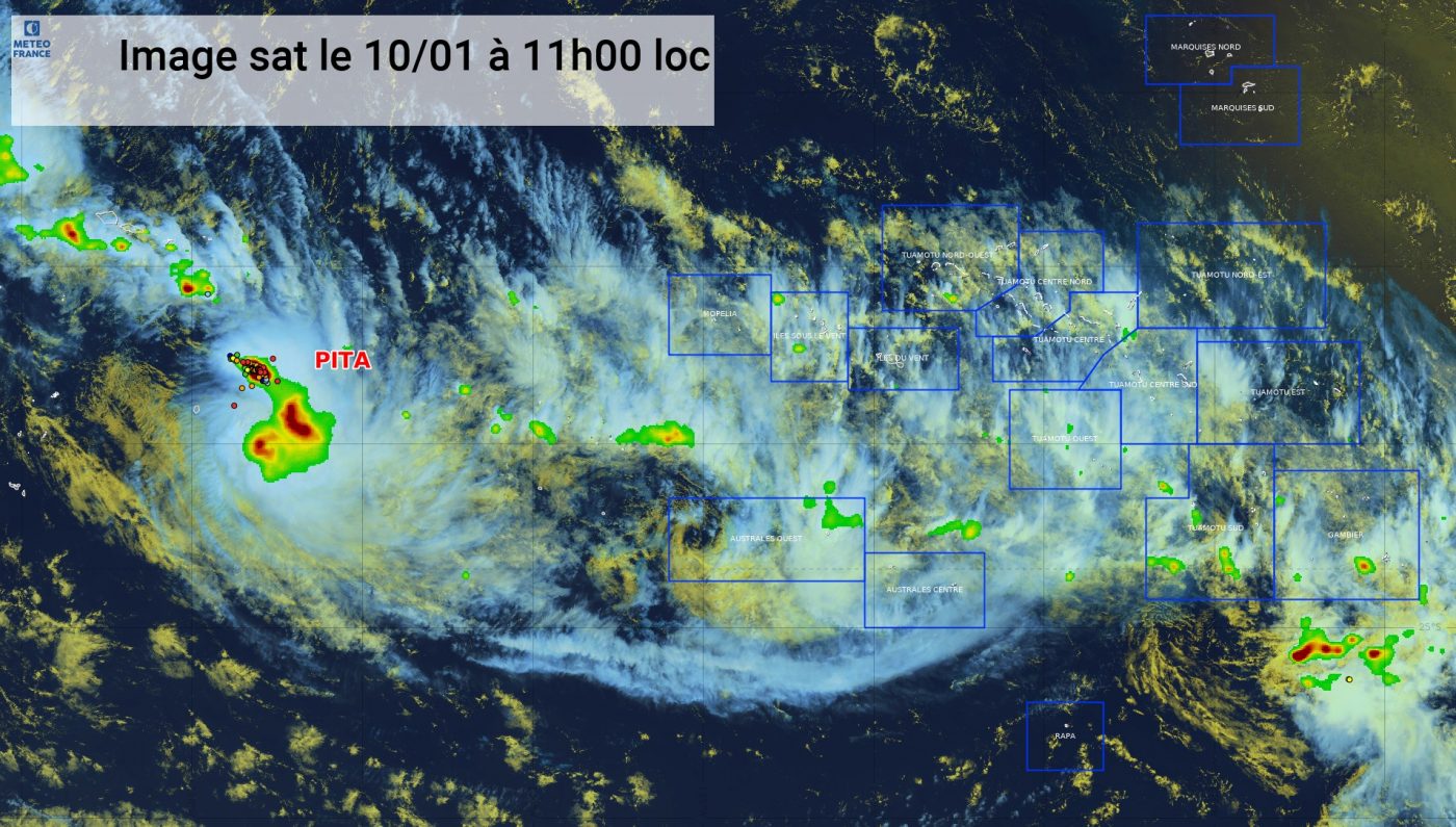 Selon Météo France, il est prévu que Pita se déplace « vers le Sud-Est en direction des Cook du Sud puis des Australes au cours des 3 prochains jours. Le système devrait s’intensifier durant les prochaines 18 à 30 heures et pourrait atteindre temporairement le stade de Dépression Tropicale Forte. Sur cette trajectoire, Pita se rapprochera des Australes Ouest dimanche en rencontrant des conditions environnementales plus contraignantes, propices à son affaiblissement ».