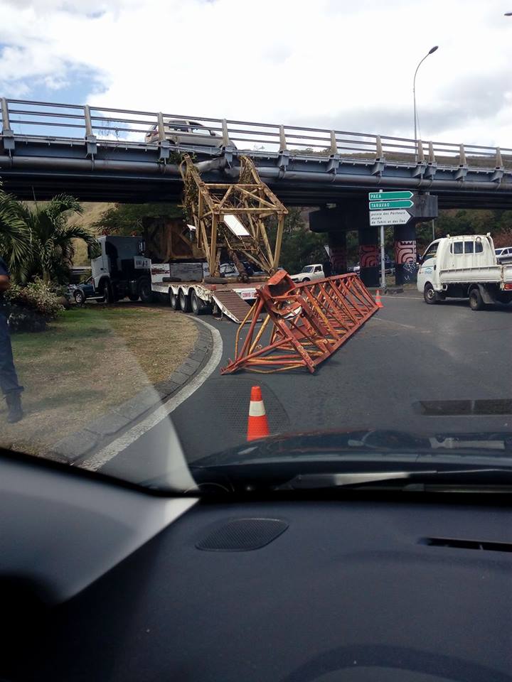 Et non, ça ne passe pas. Et ça ne passera jamais ! Le conducteur a quand même tenté le coup. Son camion est resté bloqué sous le pont. Les pompiers de Punaauia ont été dépêchés sur place. Il n’y a pas de blessé.