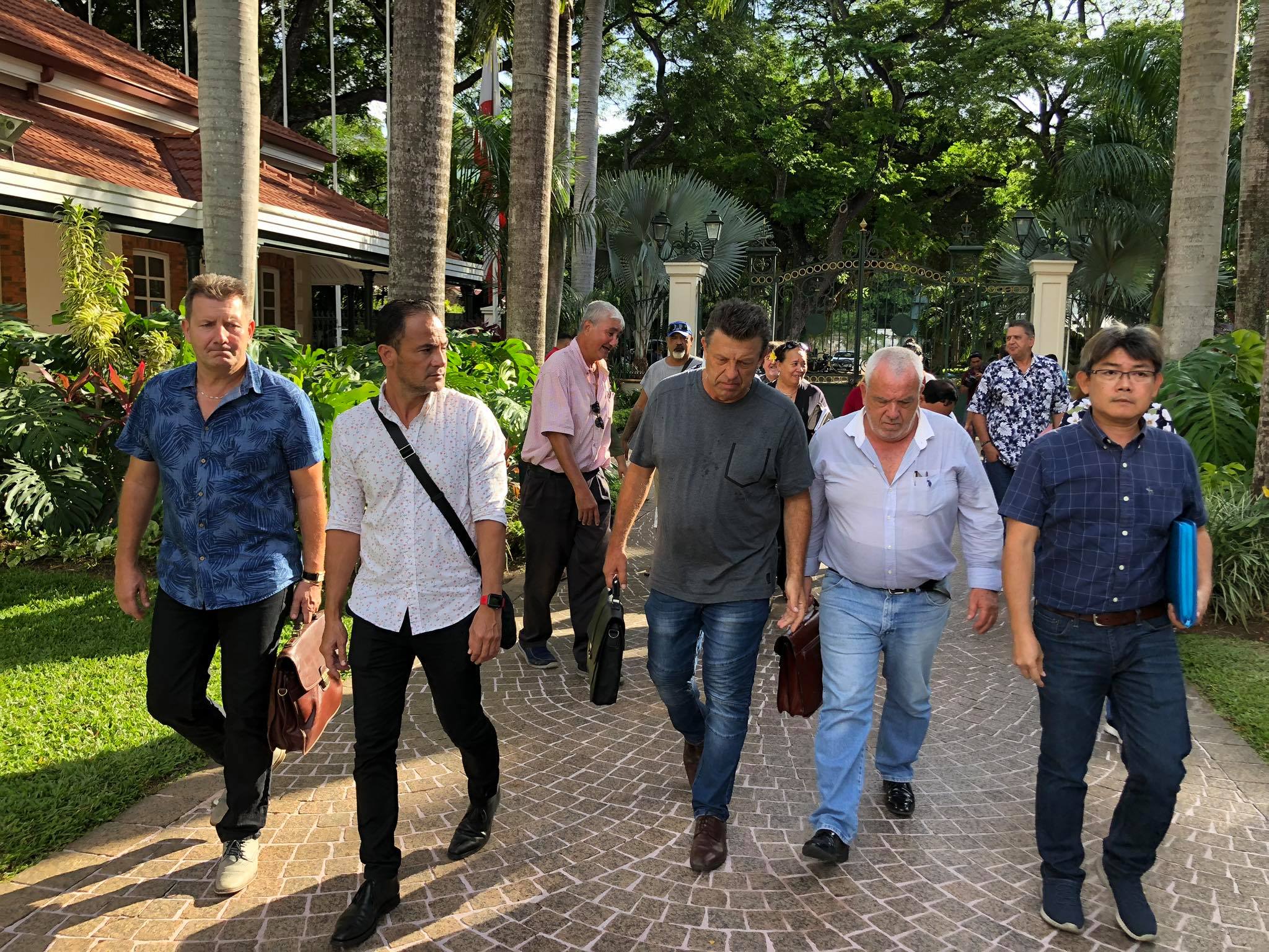Peu avant 16h30, le Président, le vice-président, les ministres de la Santé et du Tourisme ont reçu les partenaires sociaux pour leur présenter le plan de sauvegarde de l’économie. Patrick Galenon portait un masque de protection. Patrons et salariés demandent un confinement total de la population.
