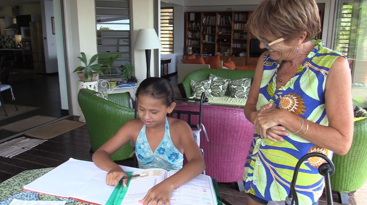 Hélène est retraitée de l’éducation. Lorsqu’elle était en activité, elle a toujours voulu aider les enfants les plus démunis. En juin 2018, elle décide avec son mari de franchir le pas. Sous l’égide de la « Croix-Rouge – Enfants du Fenua », Hélène a choisi de venir en aide à Hinatea Elodie, âgée de dix ans. Elle la récupère tous les mercredis et vendredis après-midi après l’école.