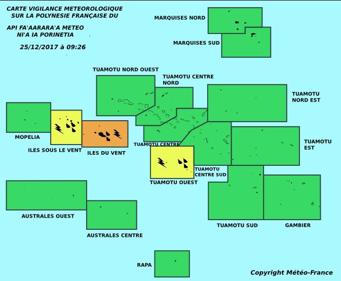 » Des développements nuageux occasionnent des épisodes pluvieux donnant des cumuls de précipitations localement importants notamment sur les côtes Nord et Ouest de Tahiti et de Moorea.
